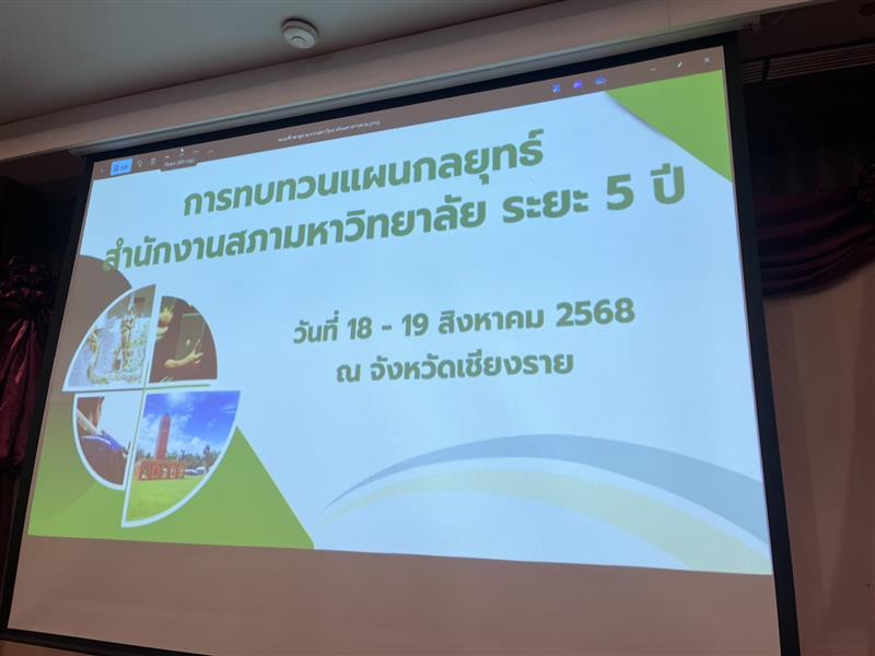 เมื่อวันที่ 19 สิงหาคม 2568 กองเลขานุการสภามหาวิทยาลัย ได้จัดกิจกรรมทบทวนแผนกลยุทธ์สำนักงานสภามหาวิทยาลัย ระยะ 5 ปี ตามโครงการศึกษาดูงานแลกเปลี่ยนเรียนรู้ฯ ณ ห้องประชุมเชียงแสน ชั้น 1 โรงแรมเวียงอินทร์ จังหวัดเชียงราย โดยมี รองศาสตราจารย์ ดร.เกรียงศักดิ์ ศรีเงินยวง รองอธิการบดีมหาวิทยาลัยแม่โจ้ เป็นประธานในการจัดกิจกรรมดังกล่าว