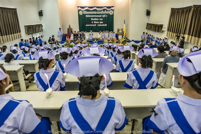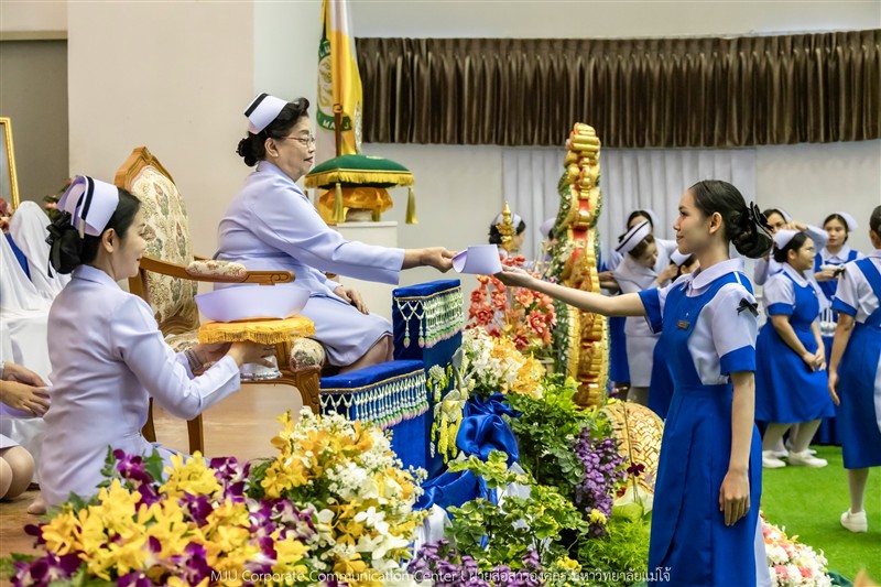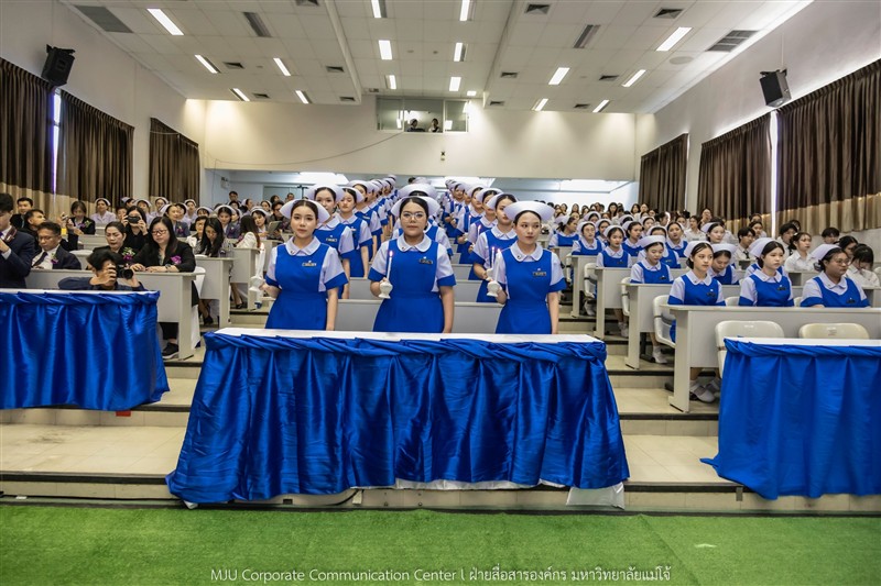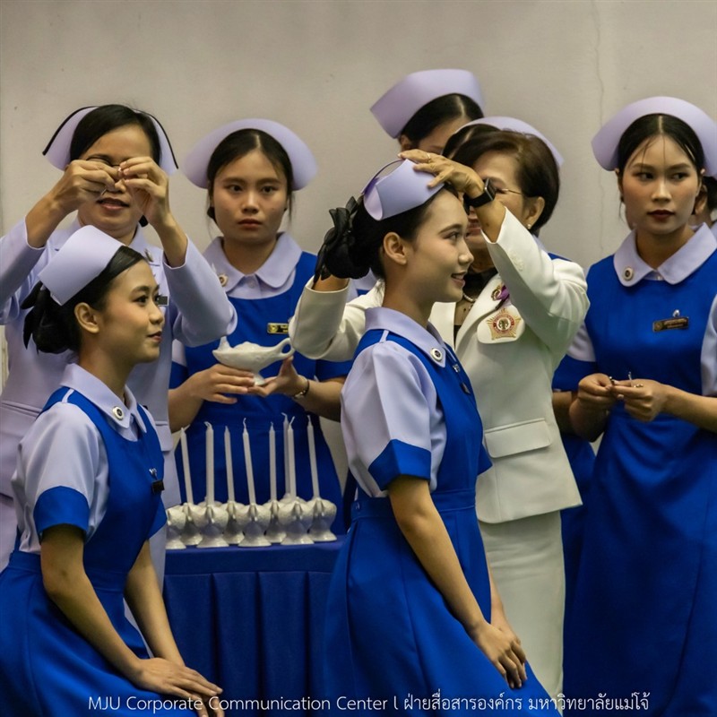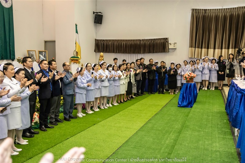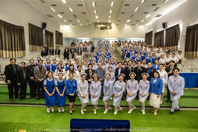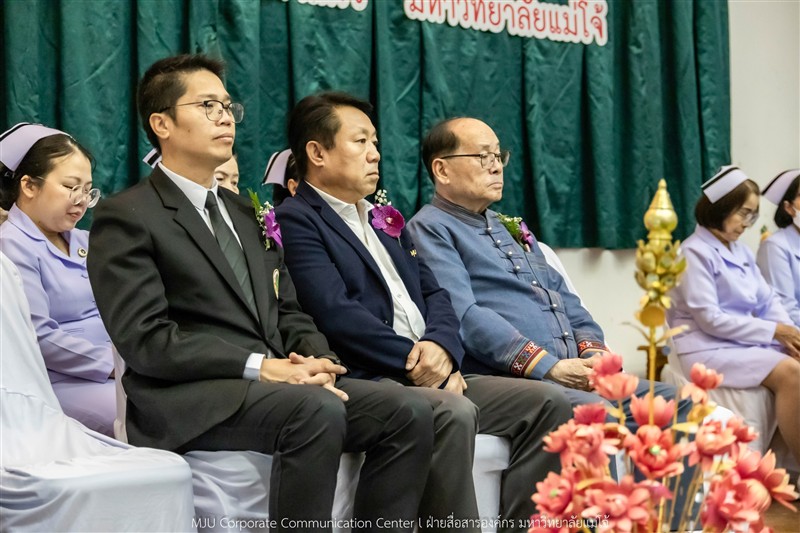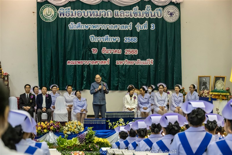 นายกสภามหาวิทยาลัย เข้าร่วมกล่าวให้โอวาท และแสดงความยินดีแก่นักศึกษาคณะพยาบาลศาสตร์ รุ่นที่ 3 ในพิธีมอบหมวก เข็มชั้นปี และตะเกียง ไนติงเกล ประจำปีการศึกษา 2568 ทั้งนี้ มีผู้บริหารมหาวิทยาลัย คณาจารย์ แขกผู้มีเกียรติจากสถาบันการศึกษาและแหล่งฝึกปฏิบัติ และผู้ปกครองร่วมแสดงความยินดี ณ ห้องประชุม E101 อาคารเรียนคณะวิศวกรรมศาสตร์และอุตสาหกรรมการเกษตร มหาวิทยาลัยแม่โจ้ในวันศุกร์ที่ 19 ธันวาคม 2568