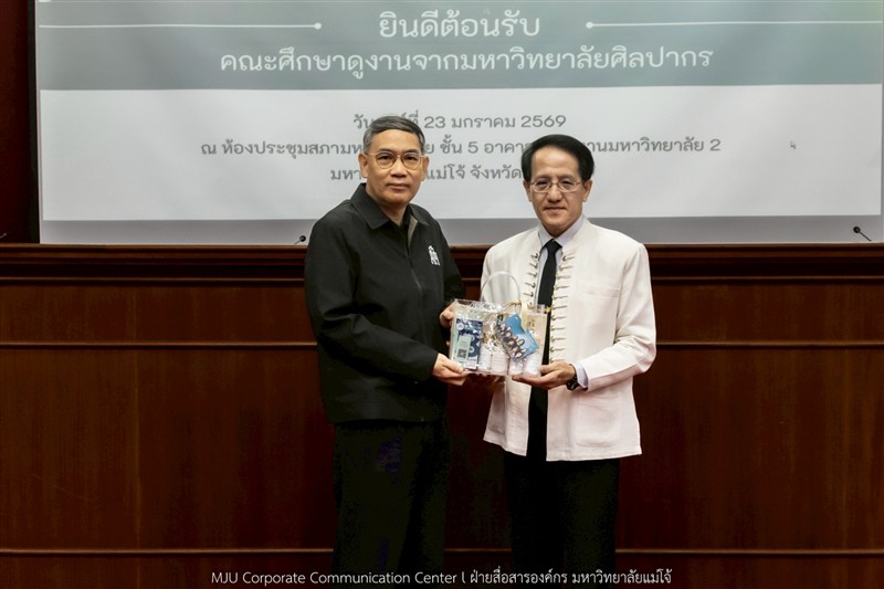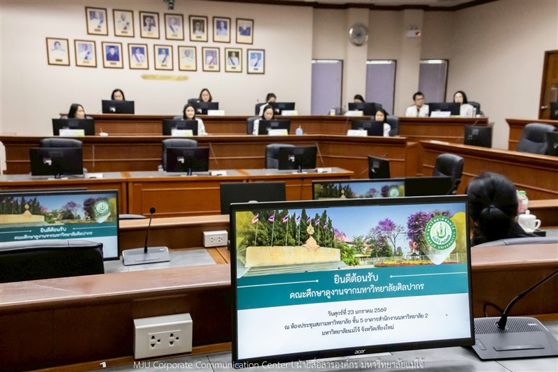วันศุกร์ที่ 23 มกราคม 2569 รองศาสตราจารย์ ดร.เกรียงศักดิ์ ศรีเงินยวง รองอธิการบดี เลขานุการสภามหาวิทยาลัยแม่โจ้ พร้อมด้วย นางสรัญญา อาษาไชย ผู้อำนวยการกองเลขานุการสภามหาวิทยาลัย และบุคลากรกองเลขานุการสภามหาวิทยาลัย สำนักงานสภามหาวิทยาลัย ให้การต้อนรับอาจารย์ปัญจพล เหล่าพูนพัฒน์ รองอธิการบดีฝ่ายบริหาร เลขานุการสภามหาวิทยาลัยศิลปากร พร้อมบุคลากรสำนักงานสภามหาวิทยาลัย มหาวิทยาลัยศิลปากร ในโอกาสเดินทางเข้าศึกษาดูงานแลกเปลี่ยนเรียนรู้ด้านการจัดการประชุมสภามหาวิทยาลัย และระบบการติดตาม และประเมินผล ณ ห้องประชุมสภามหาวิทยาลัย ชั้น 5 อาคารสำนักงานมหาวิทยาลัย 2 มหาวิทยาลัยแม่โจ้ จังหวัดเชียงใหม่